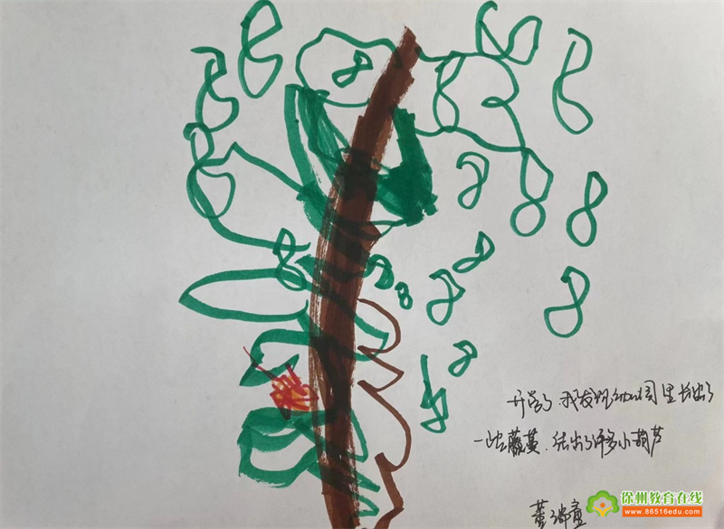 我们幼儿园的西边枯枝上缠绕着许多藤蔓,上面还结出了许多绿色的葫芦